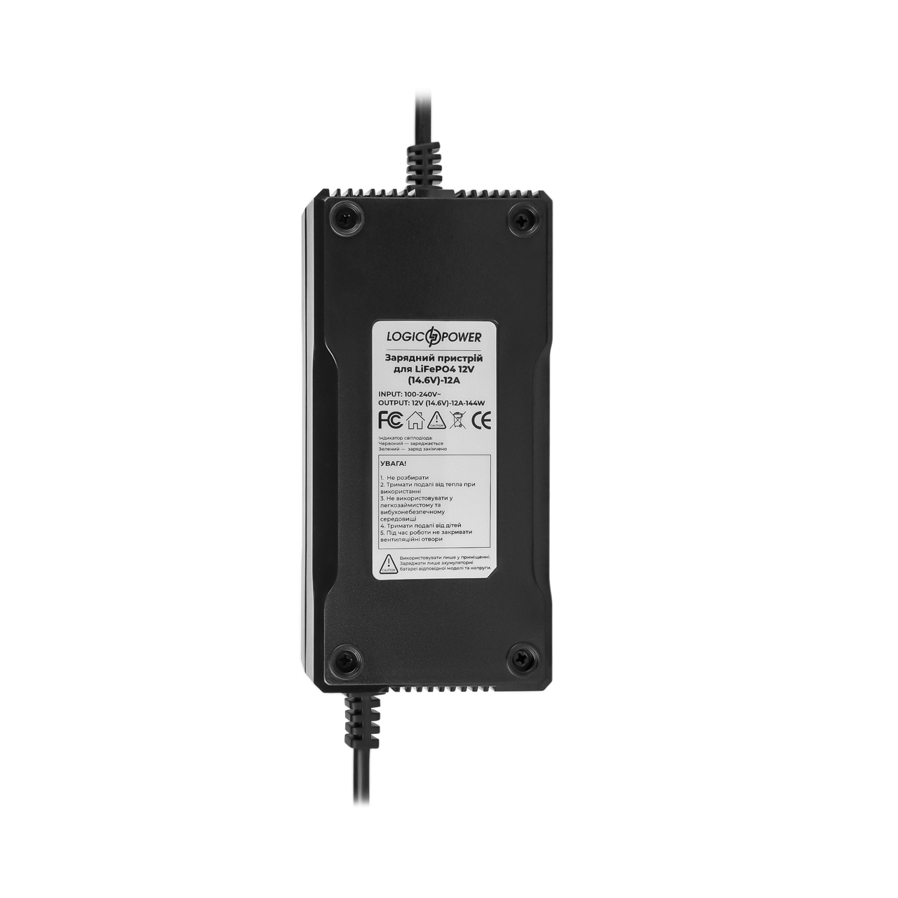 Зарядний пристрій 12V (14.6V) -12A-144W призначено для заряду літій-залізо-фосфатних акумуляторних батарей.